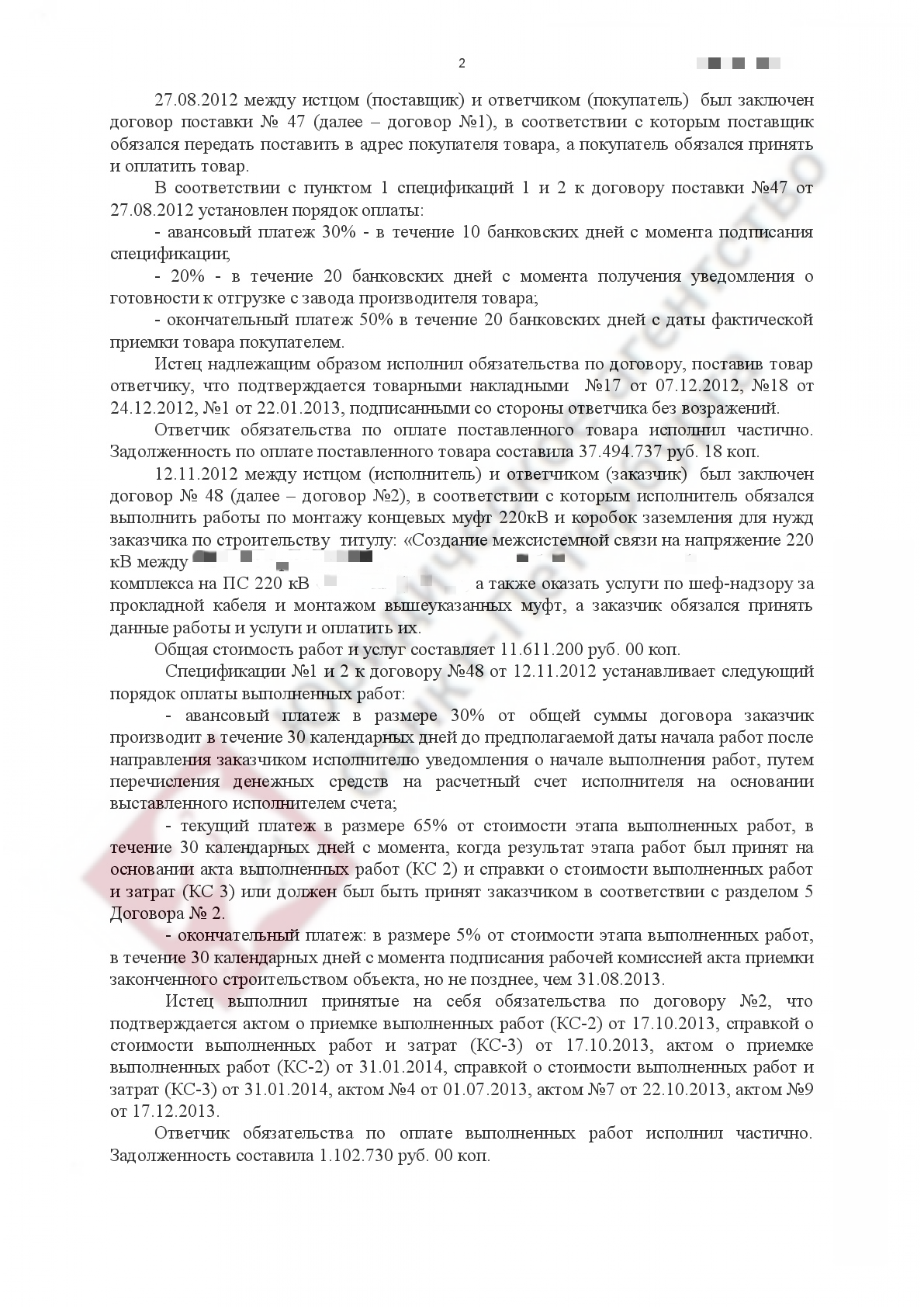 28 августа 2012 года наш клиент заключил договор поставки высоковольтного кабеля со следующими условиями оплаты:- 30% от общей суммы в течение 10 банковских дней после подписания спецификации;