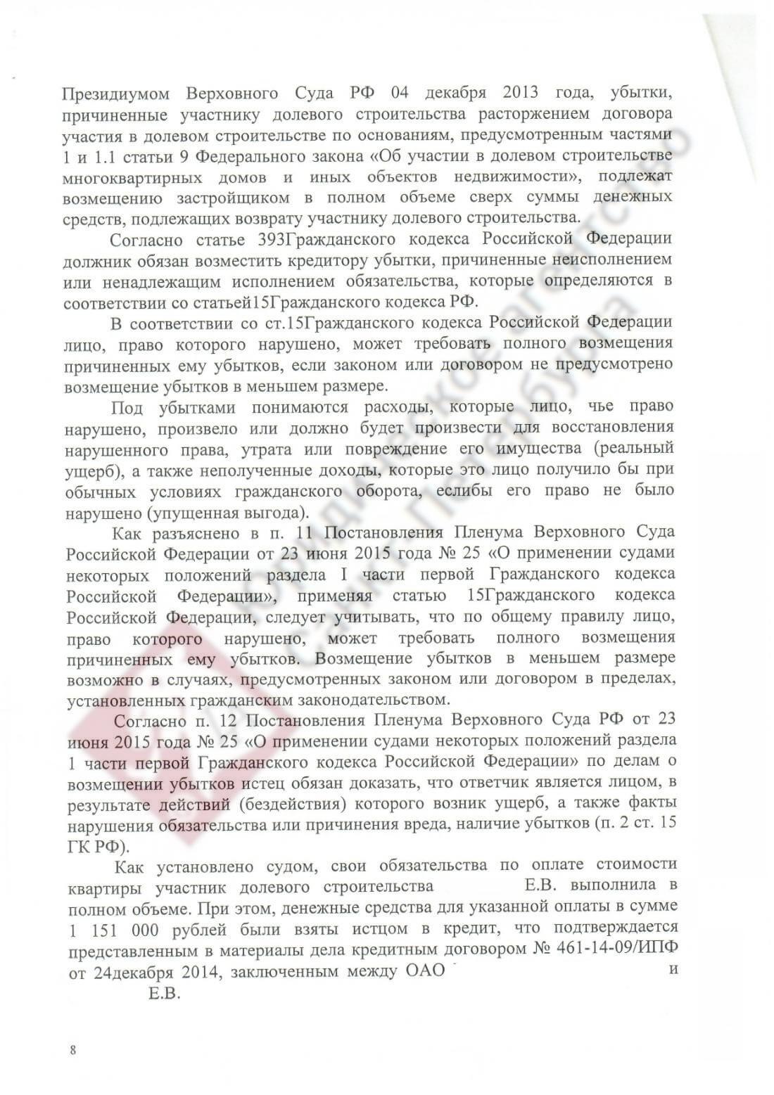 Расторжение договора долевого участия с застройщиком и взыскание более 5 миллионов за квартиру стоимостью 1,6 миллиона