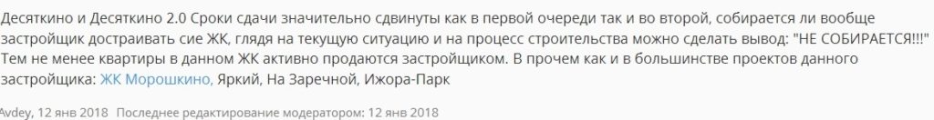 Ситуация с ЖК «Десяткино 2.0» на начало 2018 года