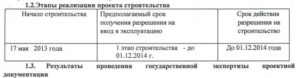 Фрагмент проектной декларации с предполагаемым сроком сдачи первой очереди: